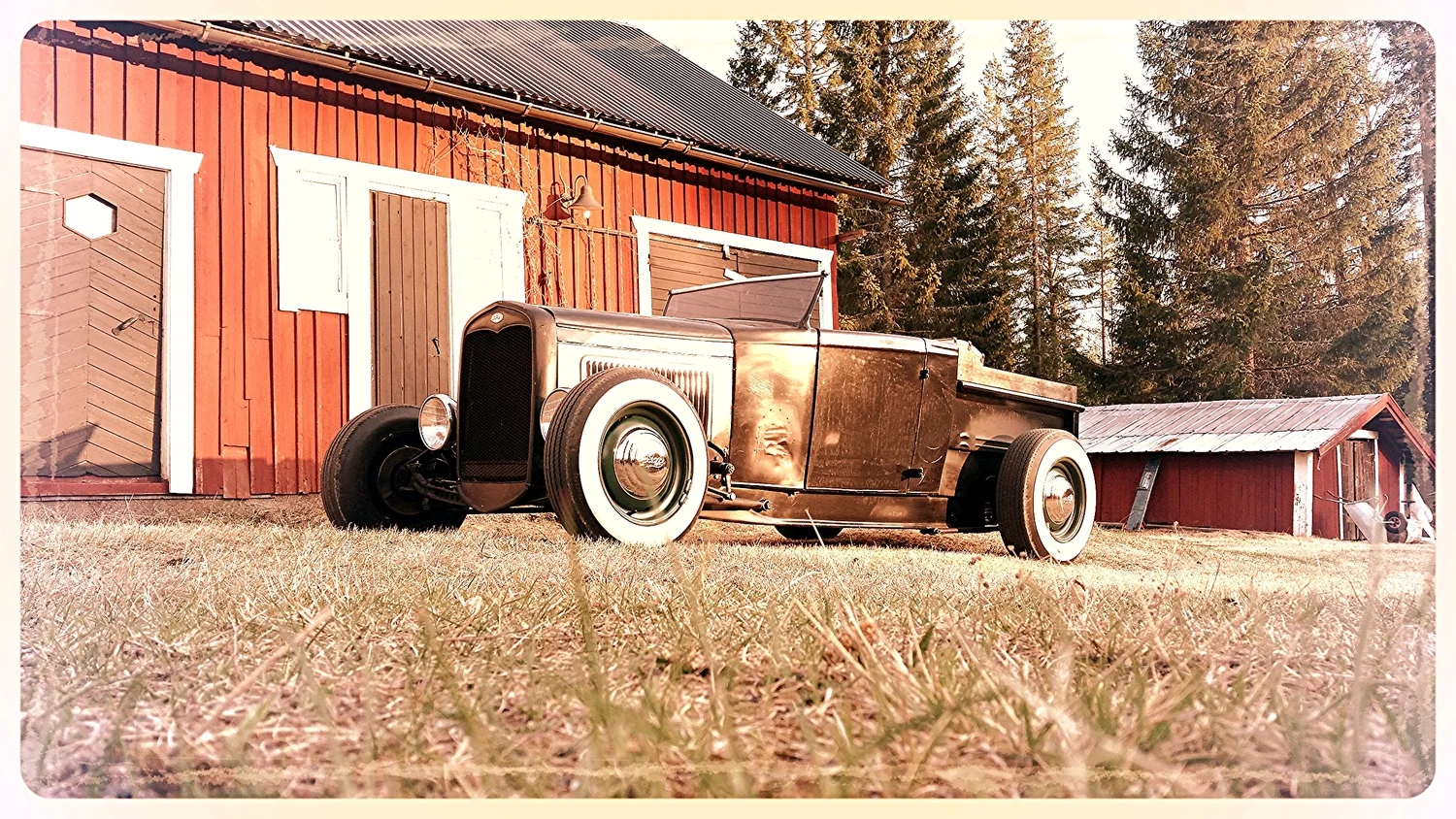 American traditional Hot Rod roadster (or open car) up to 1937 with bias ply tyres..